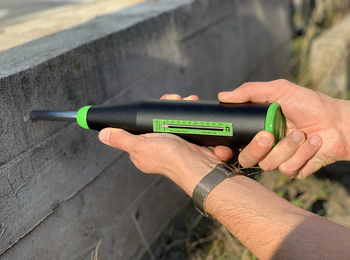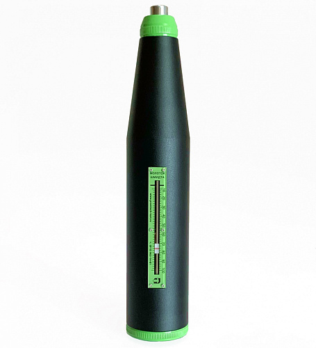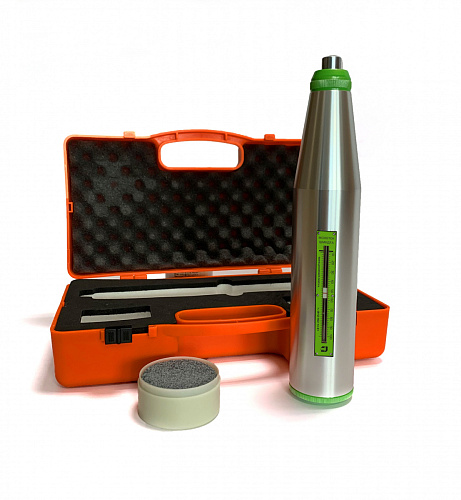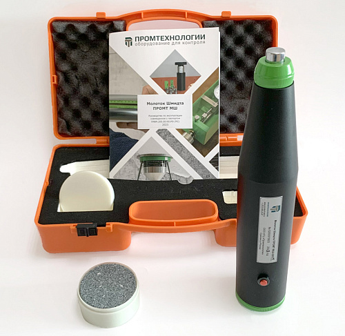 Молоток Шмидта (склерометр) ПРОМТ МШ-225 – применяется для неразрушающего контроля прочности бетона толщиной от 70 мм по ГОСТ 22690-2015, ГОСТ 18105-2018, ASTM C 805, EN 12 504-2, ISO 1920. В основу метода положено определение значения упругого отскока индентора прибора от поверхности исследуемого бетонного объекта с дальнейшим переводом полученного результата в единицы прочности на сжатие в МПа. Перевод осуществляется по градуировочным таблицам поставляемым вместе с молотком с учетом положения склерометра в пространстве. На результат измерения также может повлиять глубина карбонизации бетона. Является самым распространенным в мире средством измерения прочности бетона. Представляет из себя модифицированную версию молотка Шмидта NOVOTEST МШ -225.