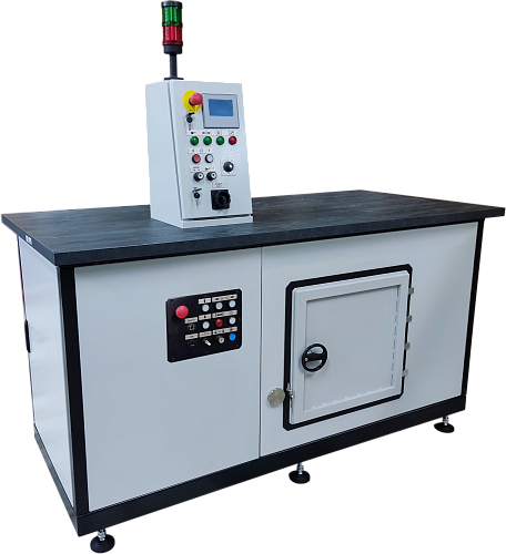 Загрузка приборов на рабочий стол осуществляется через дверь. С центрального и наладочного пультов можно осуществлять управление всеми механизмами установки в наладочном и полуавтоматическом режимах.
