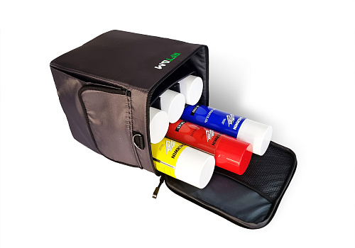 Cумка RFT-DM предназначена для комфортной транспортировки, переноски и работы с баллонами для ПВК и МПК. Подходит практически для всех известных производителей баллонов: КЛЕВЕР, SHERWIN, NABAKEM, HELLING, MR CHEMIE, MAGNAFLUX. ndtclub